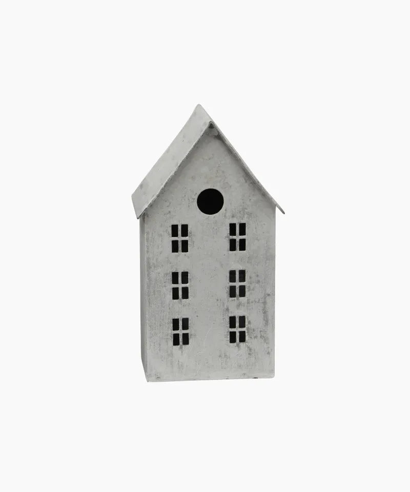 This Tall Zinc Tealight House adds a warm glow to your Christmas display with a light grey modern-Scandi charm. Simply place a tealight candle inside and enjoy the subtle flicker of light.