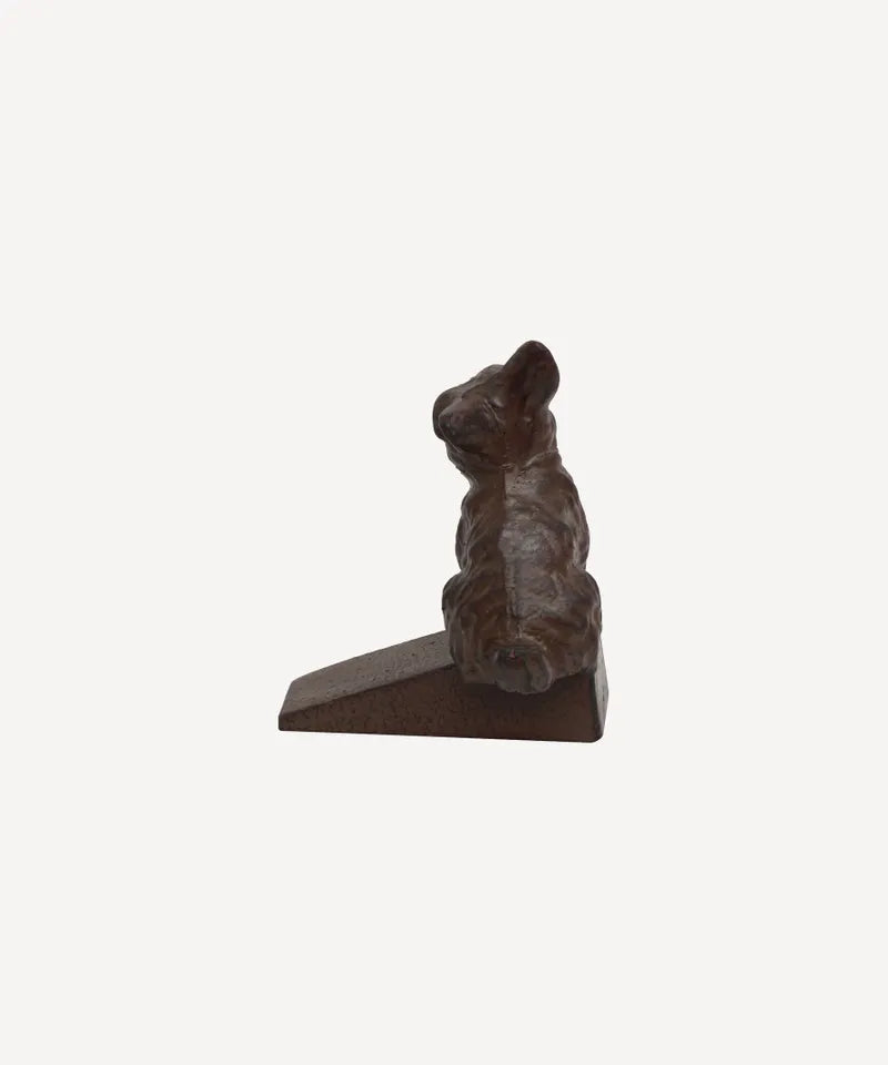 Fun and charming scottie dog doorstop in antique brown iron, a useful and decorative way to keep your doors open.
