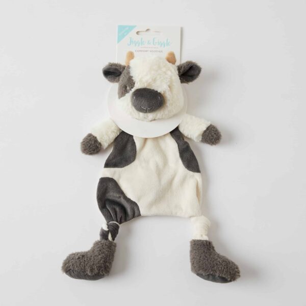 Bertie the Cow Comforter is both adorable and functional for teething babies to soothe sore gums. The comforter features knotted legs and a soft velour body, making Bertie a cuddly companion.