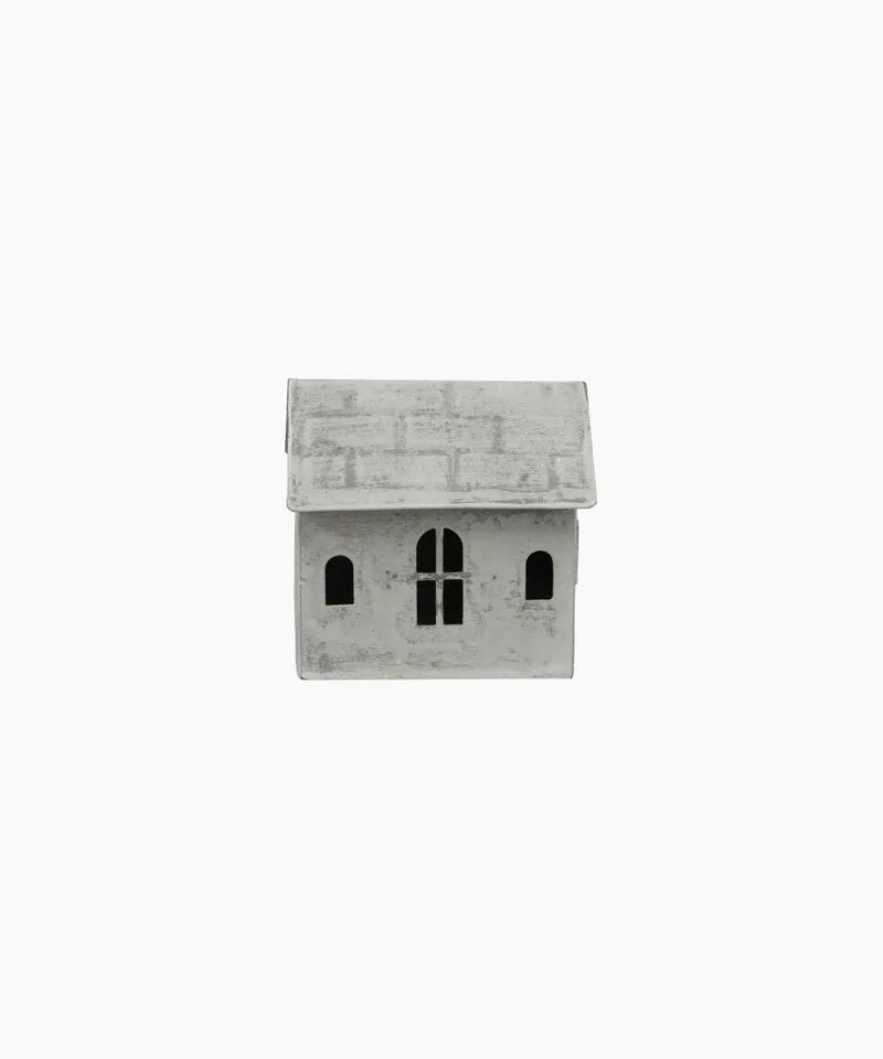 This Small Zinc Tealight House adds a warm glow to your Christmas display with a light grey modern-Scandi charm. Simply place a tealight candle inside and enjoy the subtle flicker of light.